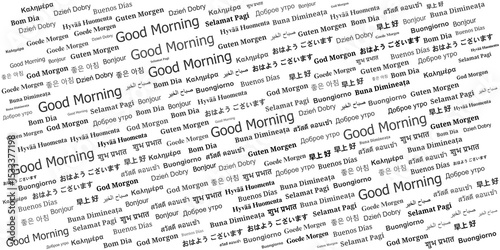 © Danawan Purbanggoro, Fototapeta premium Multilingual Good Morning Text Pattern Background