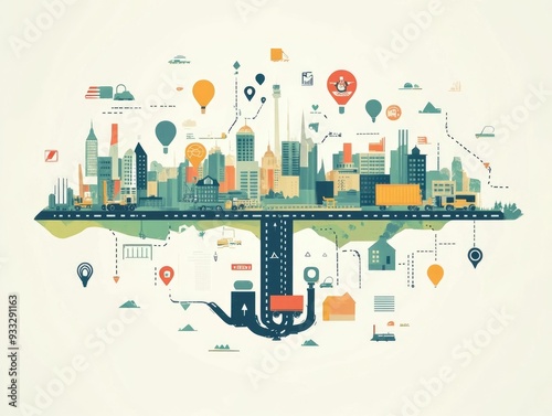 Obraz premium Multimodal Logistics Network Freight Transportation System Connecting Air Sea Rail and Road for Seamless Cargo Delivery