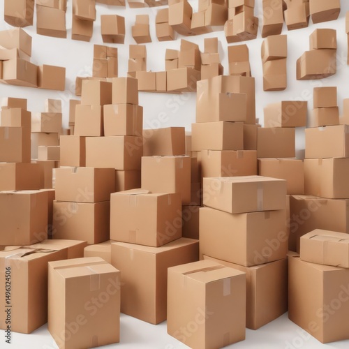 Obraz premium Multiple brown cardboard boxes arranged on pristine white backdrop , zero...
