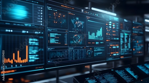 © Jojo*, Obraz premium Multiple Computer Screens Displaying Data and Graphs