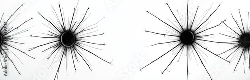 Obraz premium Multiple dark impact holes create intricate spiderweb cracks on transparent...