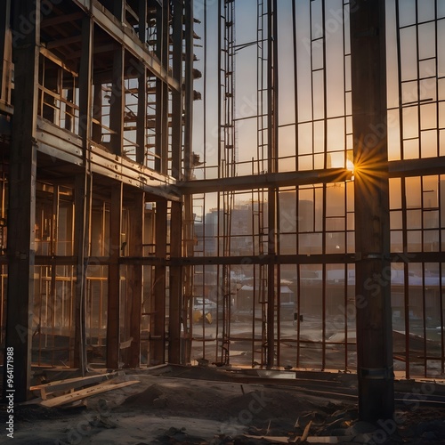 © Airdute, Obraz premium Multiple exposure image of construction site at dawn