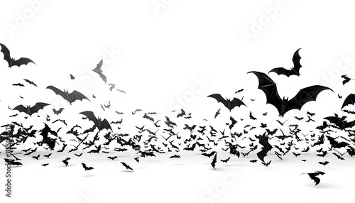 © Oleksiy, Fototapeta premium Multiple flying bats in motion isolated on white background