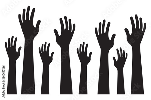 Obraz premium Multiple Hands Silhouette Raised in Unison