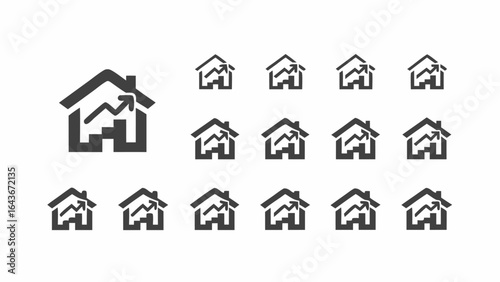 Fototapeta premium Multiple house icons with an upward trending graph inside, arranged in a grid...