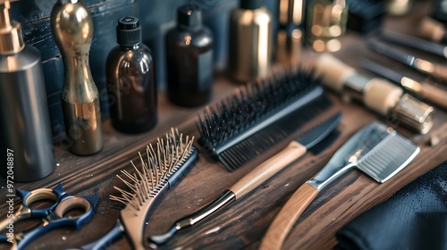 © AI Stock House, Fototapeta premium Multiple instruments used in hair salons to