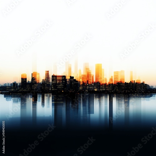 © jitthanant, Fototapeta premium Multiple layers of a city skyline at dusk, urban complexity