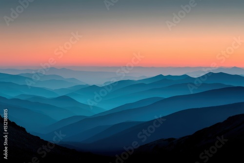 Fototapeta premium Multiple layers of blue mountains create a serene landscape under a colorful...