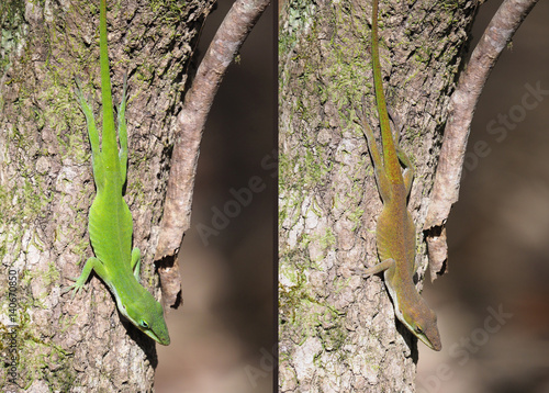 Naklejka premium MUltiple Photos of Green Anole as He Changes Colors