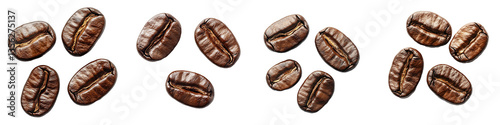 © Trendy Motion, Obraz premium Multiple Roasted Coffee Beans Close Up View isolated with Transparent PNG