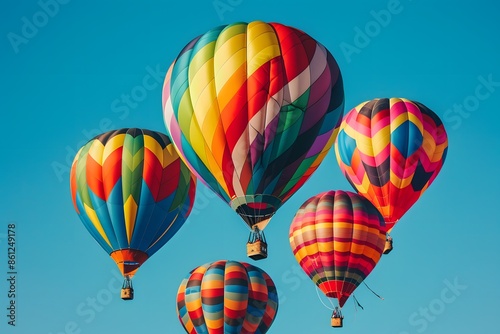 Fototapeta premium Multiple vibrant hot air balloons soaring in sky