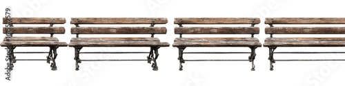 © abbas, Naklejka premium Multiple weathered wooden park benches