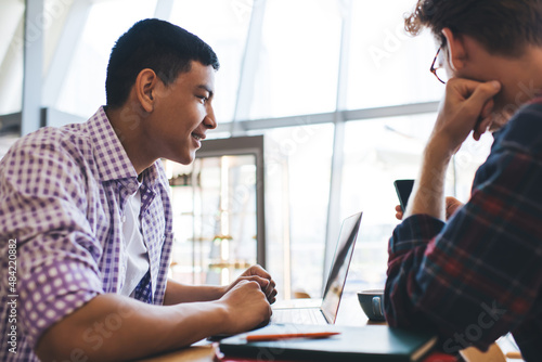 © BullRun, Fototapeta premium Multiracial business men working in office space