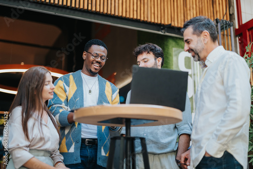 © qunica.com, Obraz premium Multiracial businesspeople collaborating on projects, discussing ideas, and strategizing for better efficiency and growth. Successful teamwork in a multinational workplace.