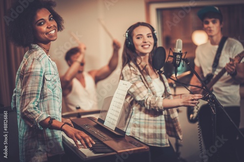 © Nejron Photo, Fototapeta premium Multiracial music band performing in a recording studio