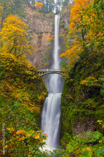 © David Gn, Fototapeta premium Multnomah Falls in Fall Season Colors