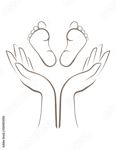 Obraz premium Mum's hands and baby's feet. Drawn with a line.