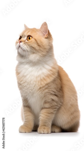 © Ismail, Obraz premium Munchkin cat sitting on white background