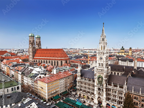 Naklejka premium Munich at Christmas, the Marienplatz. Top view, Bavaria, Germany