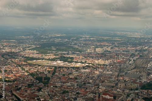© Robert, Obraz premium Munich city center in Germany seen from a small plane