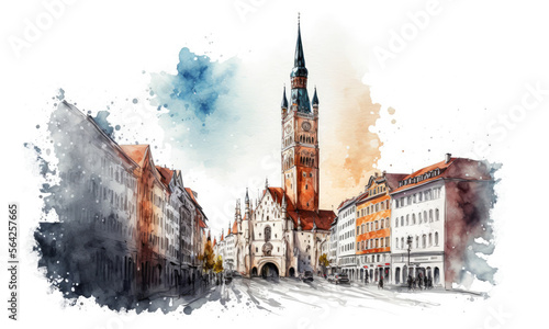 Fototapeta premium munich city watercolor illustration, generative ai