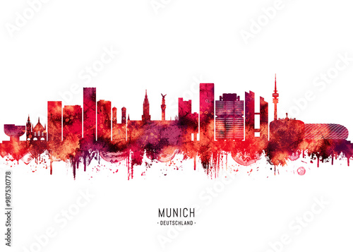 © Towseef Dar, Fototapeta premium Munich Germany Skyline Red