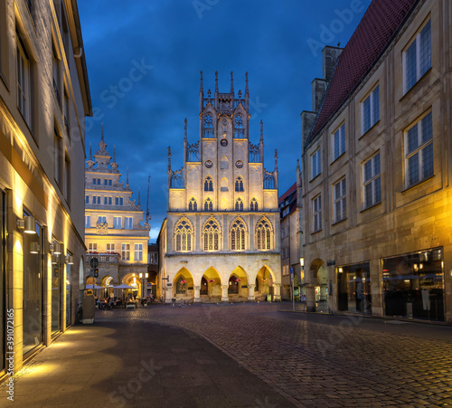 Naklejka premium Munster, Germany. Historical City Hall at dusk