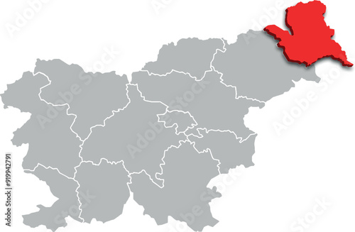 © WALDIR, Naklejka premium mura region map ADMINISTRATIVE DIVISIONS of SLOVENIA 3d isometric map