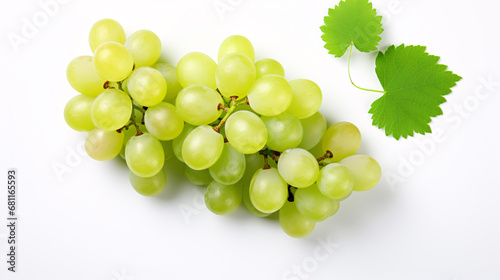 Obraz premium Muscat grapes are presented in a top view on a white background, glistening...