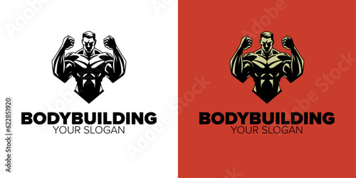 © Giu Studios, Obraz premium Muscle Power Unleashed: Abstract Vector Logo of a Bodybuilder Gym, Exuding Strength and Style
