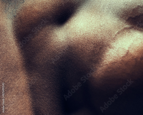 © peopleimages.com, Fototapeta premium Muscle, skin and back of man with art, fitness and bodybuilder with glow, shine and gym aesthetic. Wellness, health and strong athlete with power, flexing and topless closeup of natural body shape