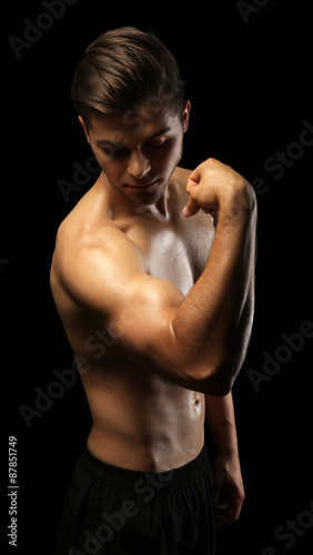 © Africa Studio, Fototapeta premium Muscle young man on dark background