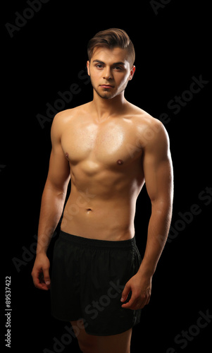 © Africa Studio, Fototapeta premium Muscle young man on dark background