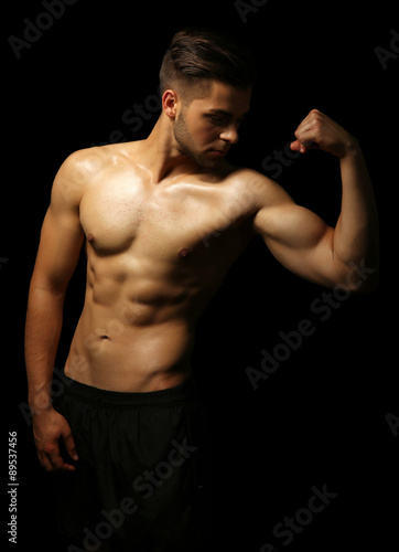 © Africa Studio, Fototapeta premium Muscle young man on dark background