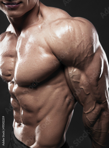 © Restyler, Fototapeta premium Muscled male model showing his biceps
