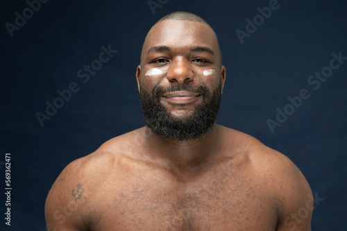 Fototapeta premium Muscular African Handsome bearded Skincare Smiling