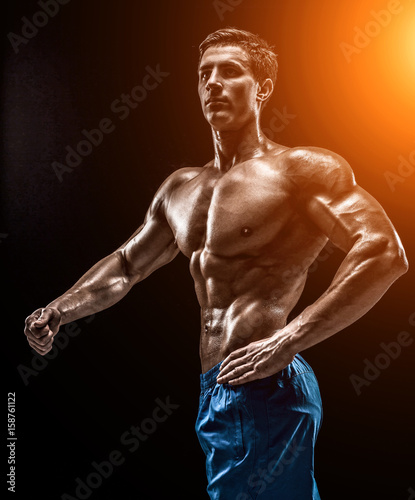 Fototapeta premium Muscular and fit young bodybuilder fitness male model posing ove