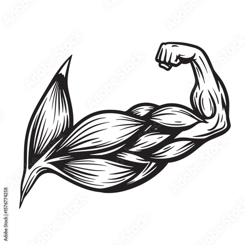 Fototapeta premium Muscular bicep arm graphic showing power strength and fitness isolated on white background