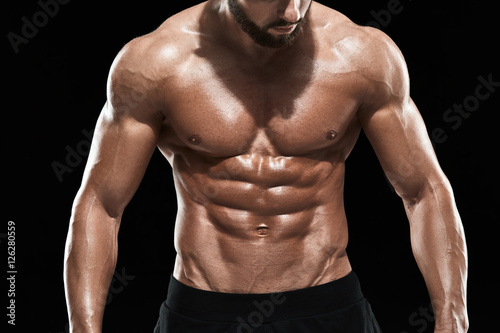 Fototapeta premium Muscular bodybuilder guy doing posing