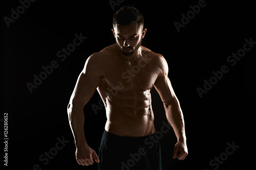 Fototapeta premium Muscular bodybuilder guy doing posing
