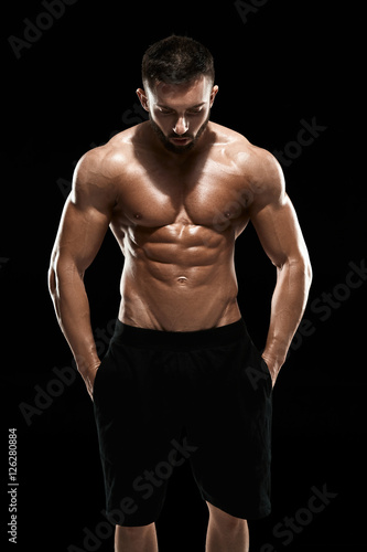 Fototapeta premium Muscular bodybuilder guy doing posing