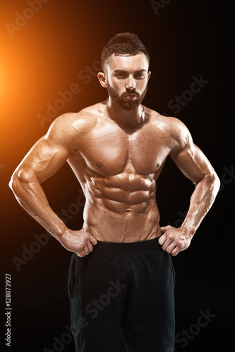 Fototapeta premium Muscular bodybuilder guy doing posing