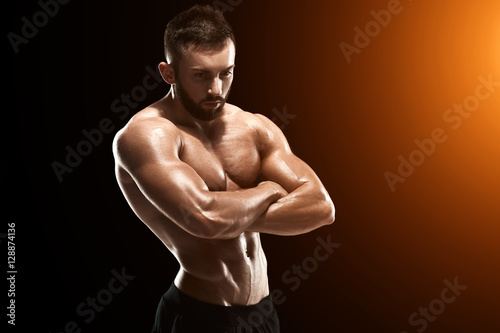 Obraz premium Muscular bodybuilder guy doing posing