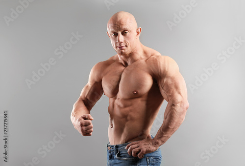 © Pixel-Shot, Fototapeta premium Muscular bodybuilder on grey background