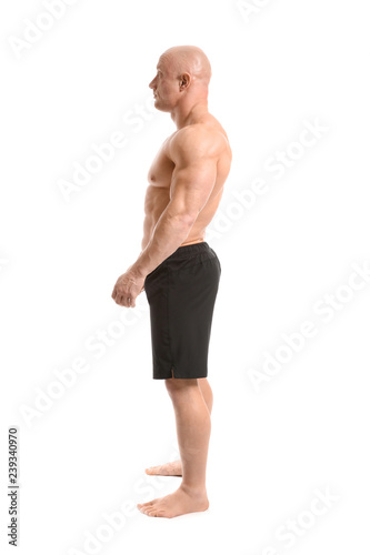 © Pixel-Shot, Fototapeta premium Muscular bodybuilder on white background