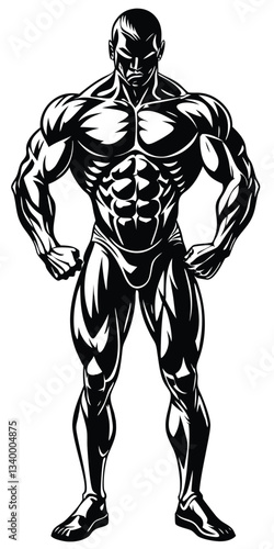 © shopone, Fototapeta premium Muscular bodybuilder vector silhouette illustration isolated on white background