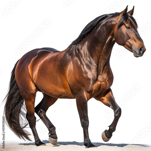 © Ferhaoui Ali, Fototapeta premium Muscular Brown Horned Horse Isolated on White – Power and Elegance in Detail