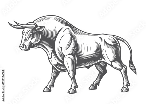 © bow, Fototapeta premium muscular bull in mid-charge, capturing strength, aggression, and motion in a bold style sketch engraving illustration. Scratch board