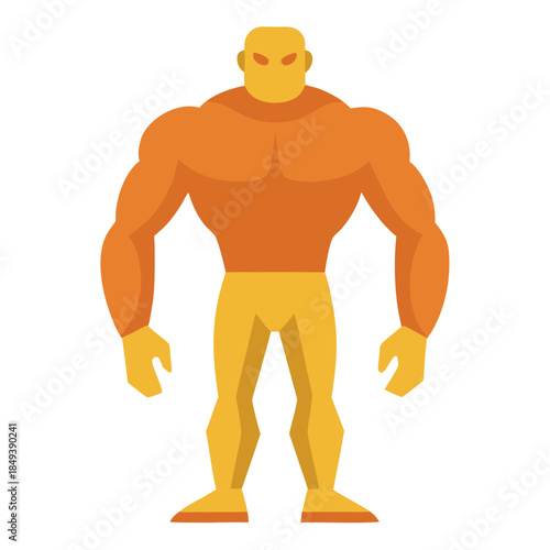 © md, Fototapeta premium Muscular cartoon superhero with orange and yellow colors standing strong