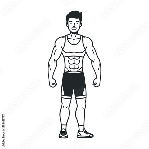 Fototapeta premium Muscular male fitness cartoon with strong caucasian adult in athletic wear....